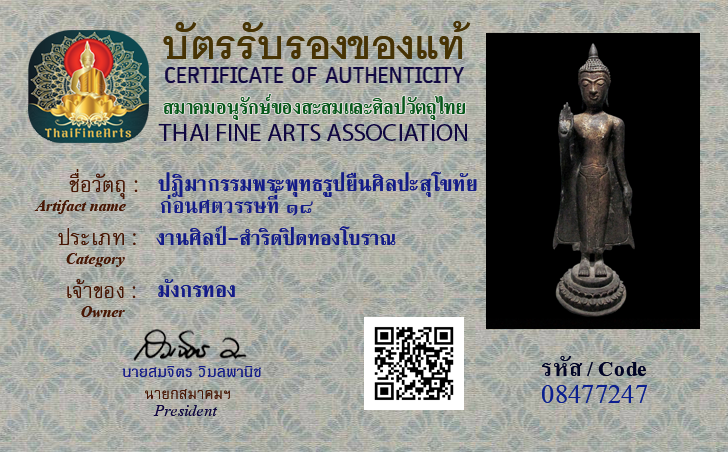 Gilt Bronze Sculpture Standing Buddha – Sukhothai Style 17/18th Century